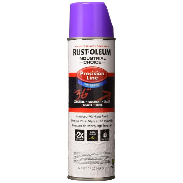 Line Marking Paint, Water Base Type, Line Striping Aerosol Yes, Fluorescent Purple, Size 17 oz. , Net Weight 17 oz. , Coverage 600 to 700 Linear ft. /2 In. Strip, Dry Time 1 to 2 hr. , Dry Time Tack Free 5 min. , Application Temperature 40 to 100 Degrees F, Application Method Aerosol, Marking Wand, Marking Pistol, Marking Wheel, Surface Asphalt, Concrete, Gravel, Athletic Fields, Parking Lots, Dirt, Mild to Moderate Exposure Conditions, For Use With Marking Guns '