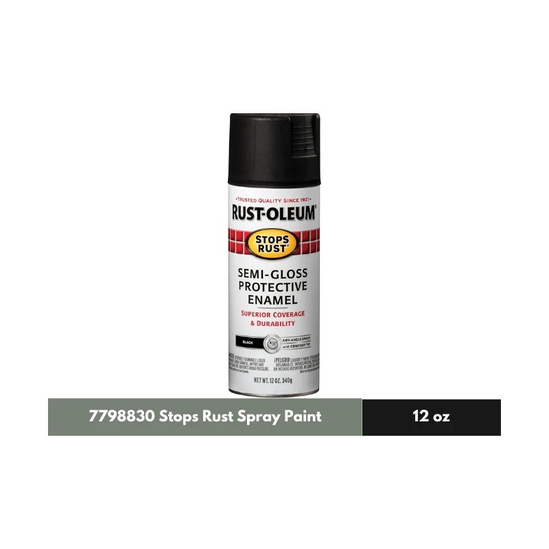 Rust-Oleum 7798830 Stops Rust Spray Paint, 12 oz, Semi-Gloss Black