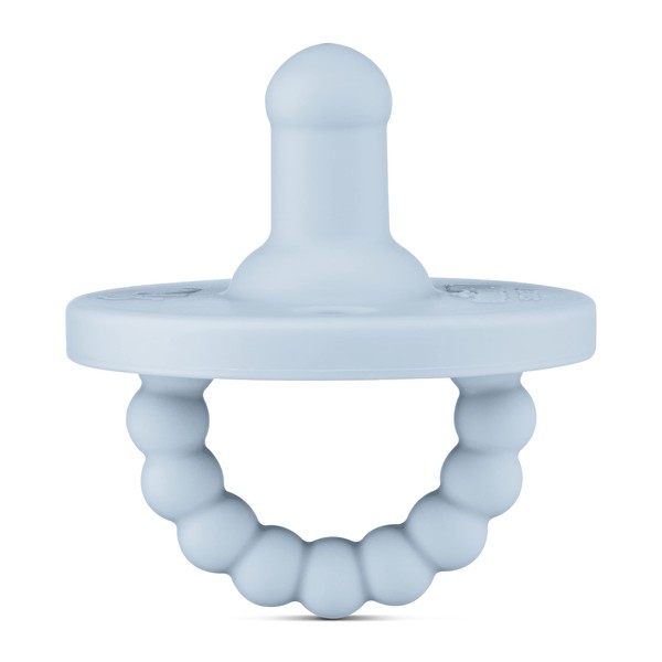 • CONVENIENT COMBO DESIGN – Both a pacifier and teething toy for developing babies. Attaches easily to a paci clip when desired. When used as teether, nipple can quickly be tucked away.