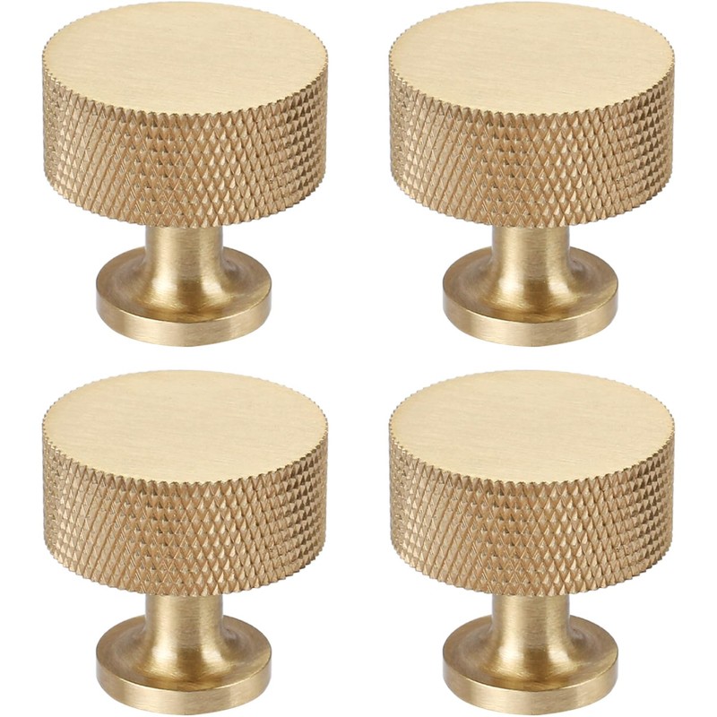RZDEAL 4pcs Solid Brass Cabinet Knobs Pulls Cabinet Drawer Dresser Gold Knobs Modern Knurled Knobs Handles (1"x1"/25mmx25mm), Brushed Brass Finish