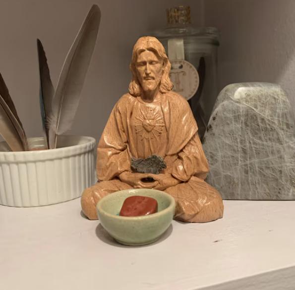 Sacred Heart of Jesus Christ Statue in contemplation Statue Holy Figurine Religious Catholic Statue Jesus Wood Carvings Religious Gifts Behold our "Sacred Heart of Jesus Christ Statue," a masterpiece of Catholic artistry. This exquisite wooden portrayal depicts Jesus Christ in contemplative repose, embodying His divine love and mercy. As the cornerstone of Catholic faith, Jesus symbolizes salvation and grace. This statue eloquently captures His enduring compassion, inspiring believers to contemplate His teachings and embrace His boundless love. A cherished addition for devout Catholics and collectors, this statue epitomizes devotion and spirituality in its purest form.