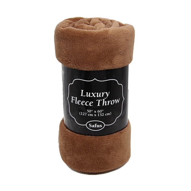 Safus Solid Fleece Blanket Plush Throw 50" x 60" - Brown