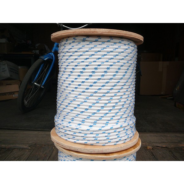 Sailboat Rigging Rope 5/16" x 100' White/Blue Double Braided Polyester Dacron Sheet Halyard Line