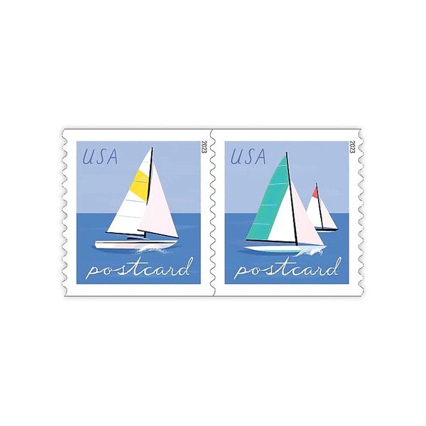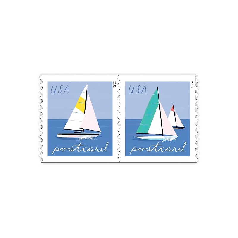 - The U.S. Postal Service celebrates a favorite outdoor activity with Sailboats, two colorful postcard stamps.