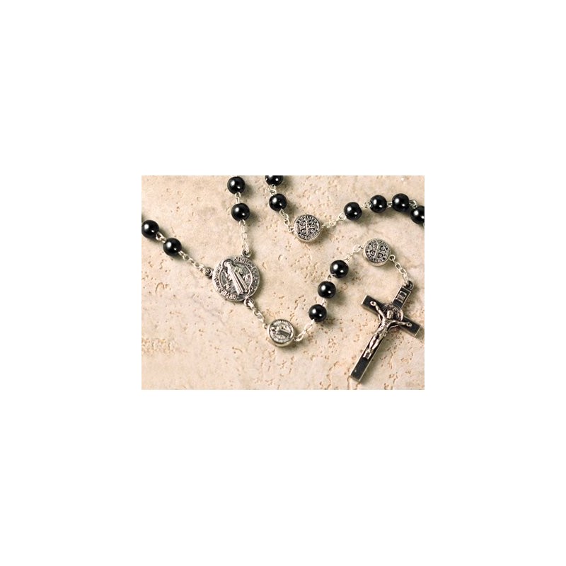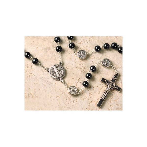 Saint Benedict Hematite Beads Rosary