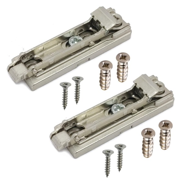 Salt base for hinges with quick release and clamp (longitudinal, H02) original set for all Salice hinge models, both self-closing and deceled. Design: longitudinal direction with quick release and fixing with both Euro screw and wood screw. Front and vertical adjustment via 2 eccentric screws. Height: H02. Box contents: 2 base + 4 Euro screws 6 x 14 mm + 4 x wood screws 4 x 18 mm.