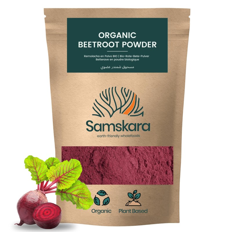 - Samskara beetroot powder is organic/organic, GMO-free, free from oil and palm oil, free from refined sugars, vegan and free from chemicals and additives, 100% natural from the earth. We recommend it for all ages and all genders. ⭐