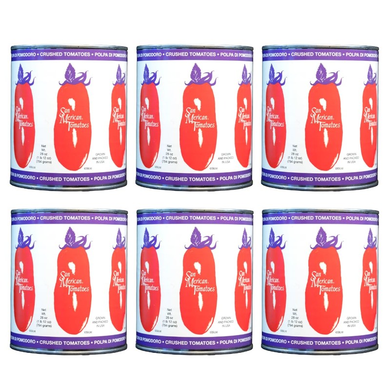 SMT SAN MERICAN TOMATO - Crushed Canned Tomatoes - 28 Ounce (Pack of 6) - USA Grown