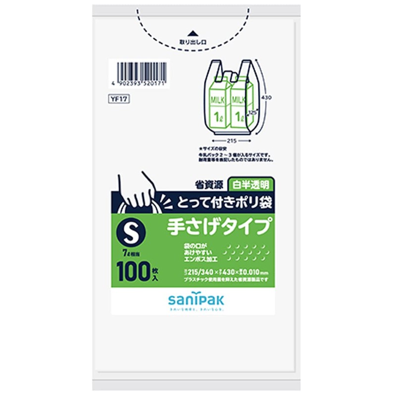 Sani Pack 0.010 YF17 Plastic Bags with Handles Embossed HD White Translucent S 100 Sheets