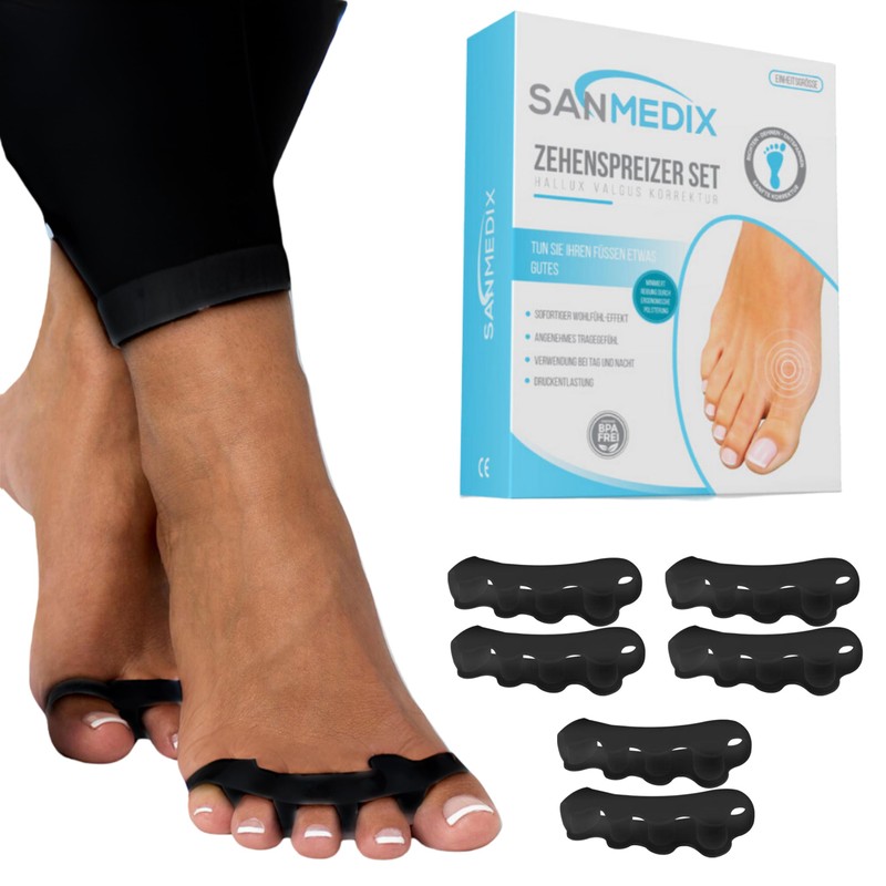 Then the toe separators from Sanmedix with their extra strong separating pad are just the thing for you. They offer an effective solution for correcting all toes!