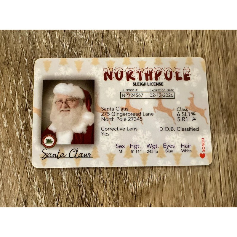Santa License are made of thick plastic just like a real driver’s license.