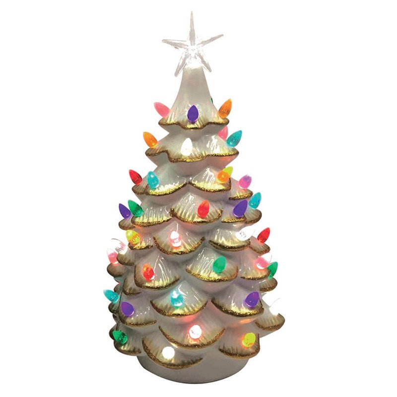 Santa's Workshop 14" Lighted White Ceramic Tree with Gold Tips