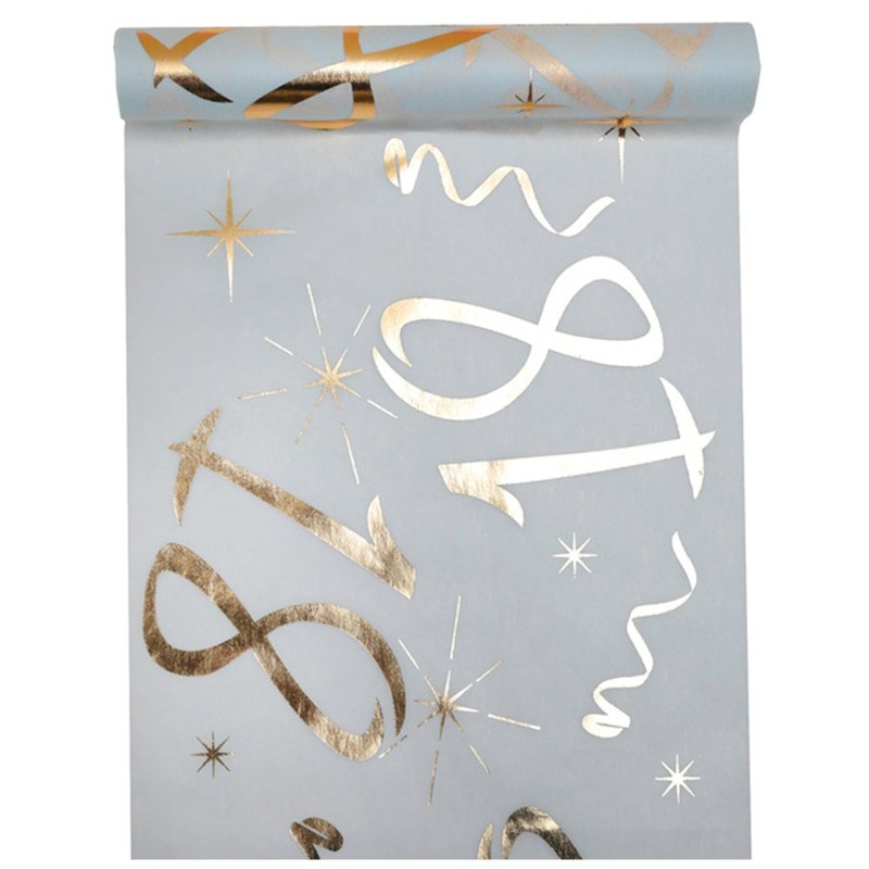 Santex White Gold Table Runner 18 Years 30cm x 5m Decorative Fabric Banner Table Runner