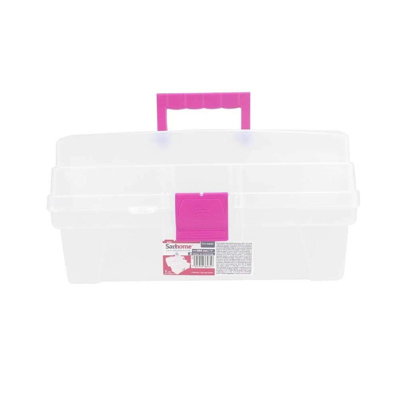 - MÁXIMA ORGANIZACIÓN. Caja multiusos, modelo 6402 de color transparente con detalle rosa. Despídete del desorden en tu casa y oficina, almacena y organiza todos tus objetos con la caja vanity de Santul.