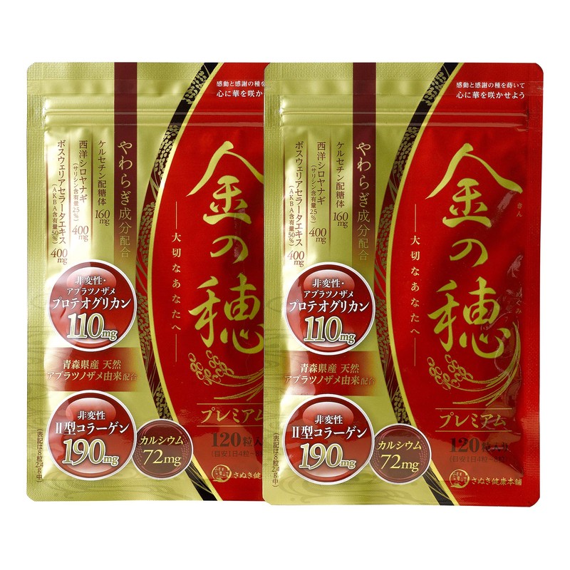 - 【プロテオグリカン含有量No.1 】金の穂 プレミアムには、8粒中プロテオグリカンが110mg(110000ug)以上含有されていることが証明されています。また、金の穂シリーズはプロテオグリカン含有量が国内製品中最も多く、最も安くお得な商品であることが報告されています。※プロテオグリカン含有サプリメント(健康食品)において製品1日目安最大量においてプロテオグリカン含有量とプロテオグリカン1ℊ当たりの価格調査。令和2年5/1~30日、(株)エスポワール アクア調査