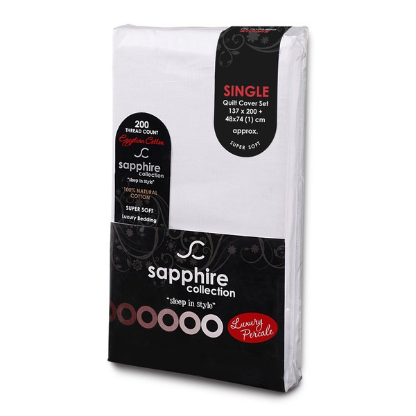 Sapphire Collection Luxury 100% Egyptian Cotton Duvet Quilt Cover & Pillowcase Bedding Set (White, Single)