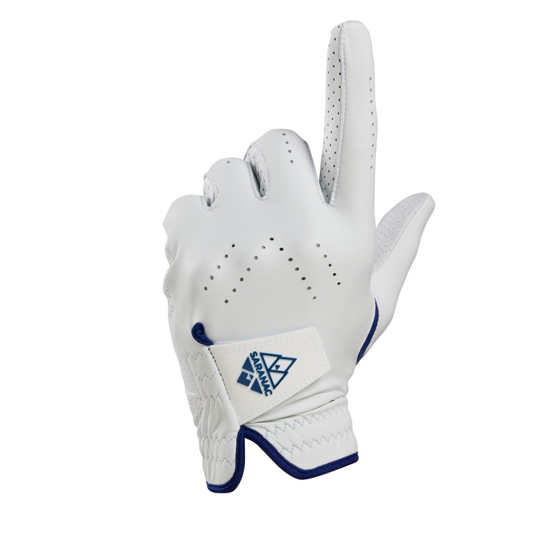 Saranac Premium Cabretta Leather Enhanced Grip Golf Glove 2-Pack, Men's Right Hand, White/Navy, Medium