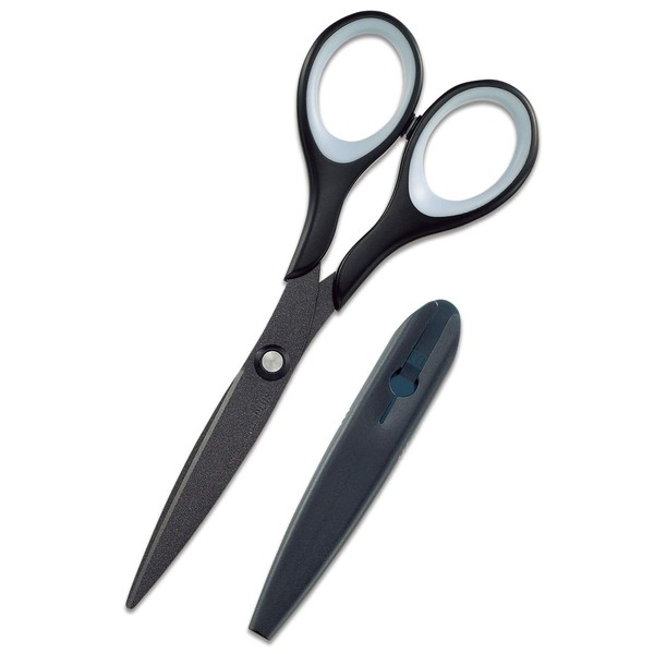 - Slim size scissors (stationery) that fit neatly into a pen case or pen stand. Fluorine coated with tape and no sticky residue. The inside of the grip is soft material that will not hurt your hands. Uses high carbon stainless steel with excellent sharpness and durability. Anti-rattle ring prevents rattling and ensures a smooth feel. *The rattling when opening the scissors is required to cut due to the structure of the scissors. The anti-rattling ring is a mechanism that reduces rattling when cut. Comes with a cap for easy storage and transportation
