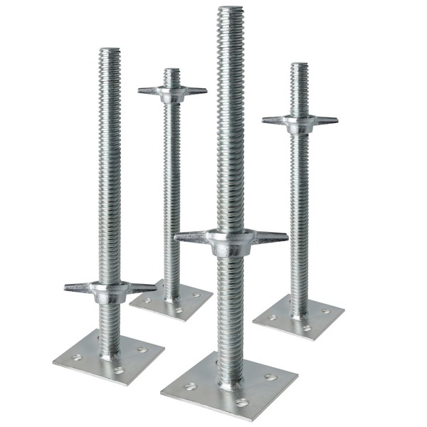 Scaffold Adjustable Leveling Jacks 18.25", 4 Pack Solid Screw Jacks with Wide Base Plate and Galvanized Finish, Fit Baker Style Scaffolding