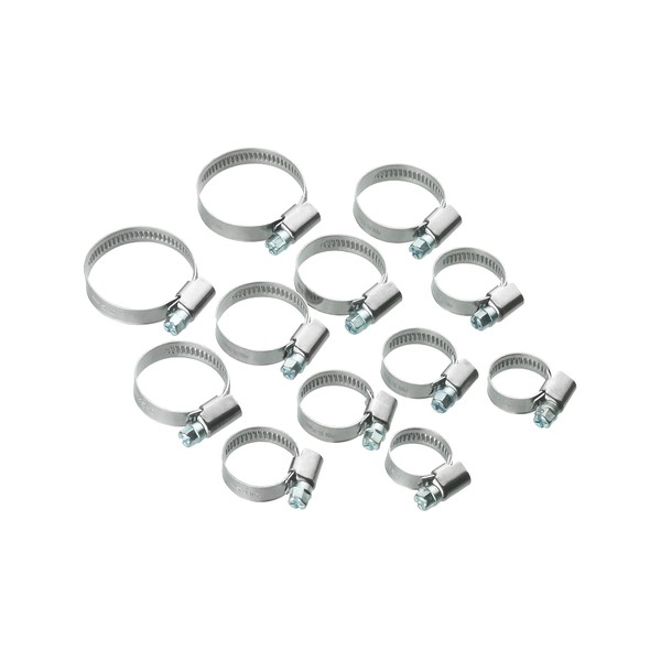 - Box contents: 12 hose clamps, various sizes Ø 12 - 20 mm (2 pieces), diameter 16 - 25 mm (4 pieces), diameter 20 - 32 mm (4 pieces), diameter 25 - 40 mm (2 pieces)