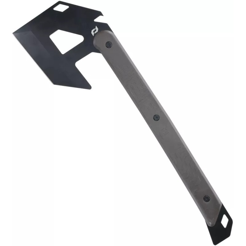New Backdraft Axe 19.25" overall. 5.25" black oxide coated 3Cr13 stainless axe head with 6.25" cutting edge. Tan rubber handle. Full, extended tang. Lanyard hole. Black polyester belt sheath. Clam packed.