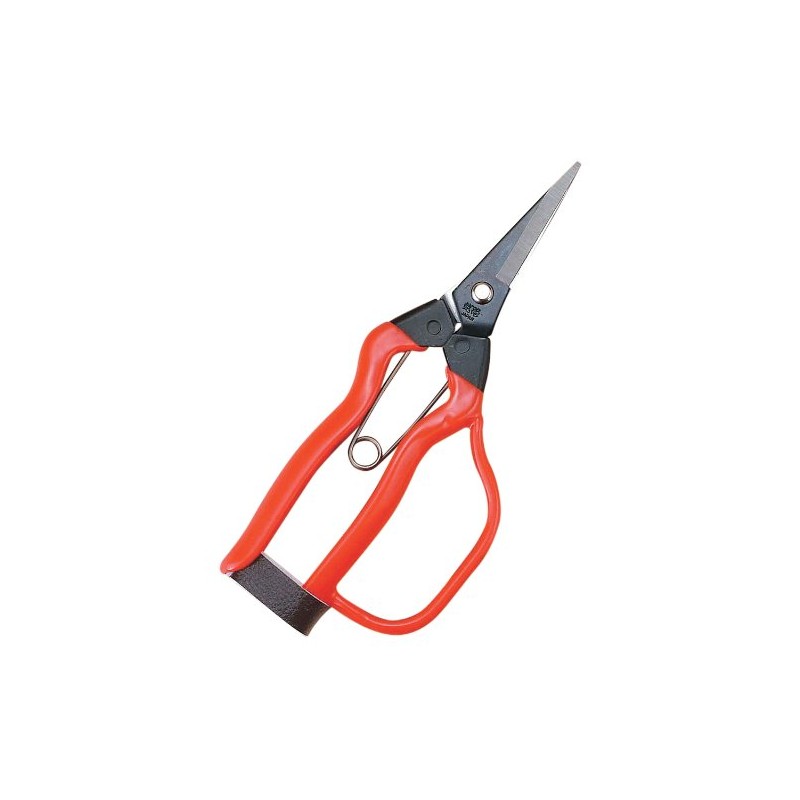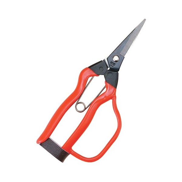 When harvesting fruit, the tip is rounded so that the blade is sharp, so you can use it for cutting vegetables or harvesting eggplant, cucumbers, etc. Comes with a guard for a firm grip. Lightweight and will not get tired even when working for a long time. Product Size: Length: 7.3 inches (185 mm), Width: 3.0 inches (75 mm), Height: 0.7 inches (18 mm); Product Weight: 3.5 oz (100 g); Package Size: Length: 10.0 inches (257 mm), Width: 3.5 inches (90 mm), Package Weight: 4.8 inches (25 mm). 0 g Spring: No.A-102; Blade: Round tip; Cutting capacity: Approx. 0.2 inches (4 mm)