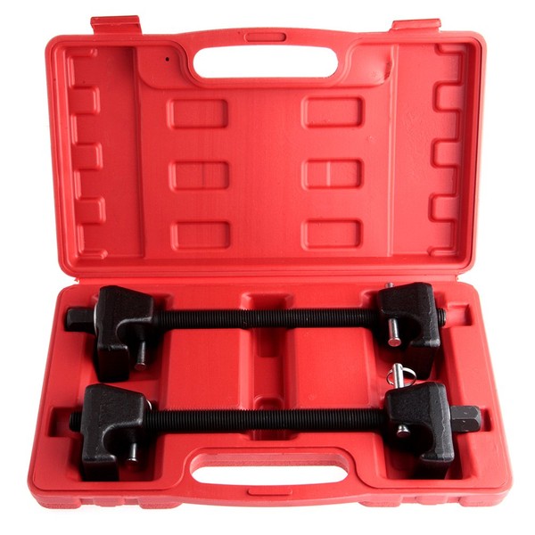 - 【PRODUCT USAGE】 Common to strut assembly from vehicle to transfer old spring to new strut, to repairs on bent struts, strut tubes, and damaged pieces. Compress the strut spring coils for convenience when replacing strut assembly and springs contact and built-in detent pins lock the spring coil in place for safer operation. Lubricate threads withseize compound for prolonged life.