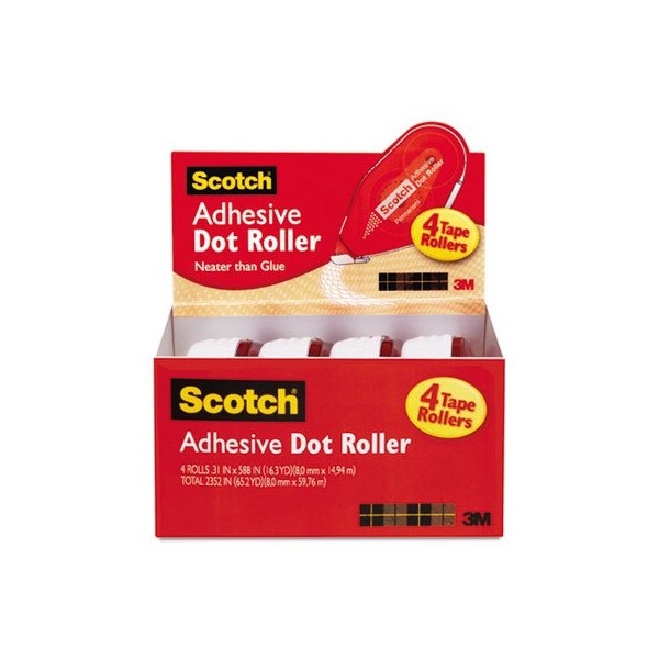 Scotch Adhesive Dot Roller Value Pack, 0.3 in x 49 ft, 4/PK