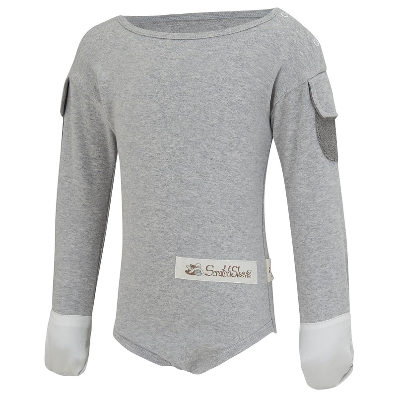 ScratchSleeves | Flip-mitt Bodysuit for Itchy Babies | Grey Marl | 0-3 Months