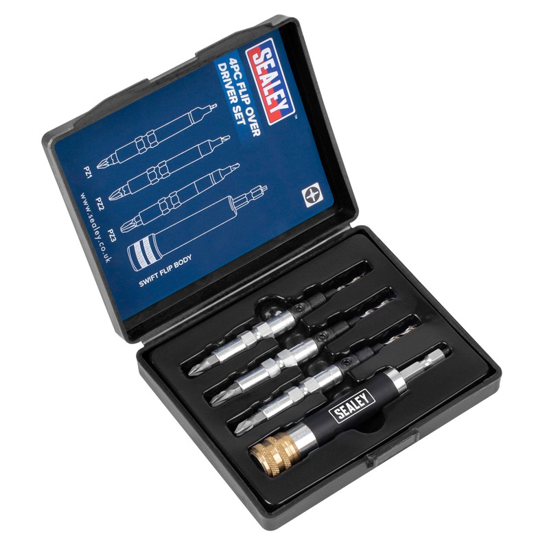 - QUICK CHANGE - 4pc Flip over driver set designed for a quick change between piloted countersinking and screwdriving functions.