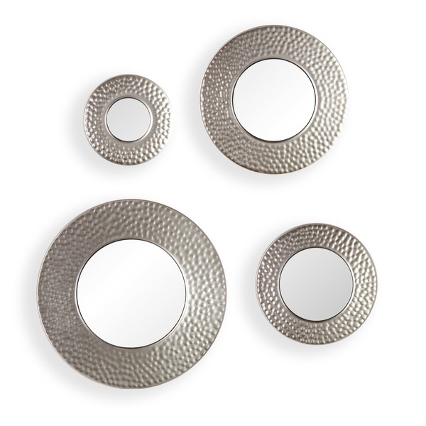 - Includes 4 hammered silver finish mirrors