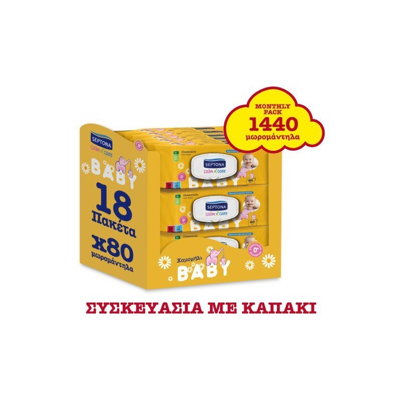 SEPTONA calm n care chamomile baby wipes are ideal for the daily care of the delicate infant skin, from day 1. Their pure formula with chamomile flower water and vitamin E gently cleanses your baby's skin, while providing natural care and freshness.
