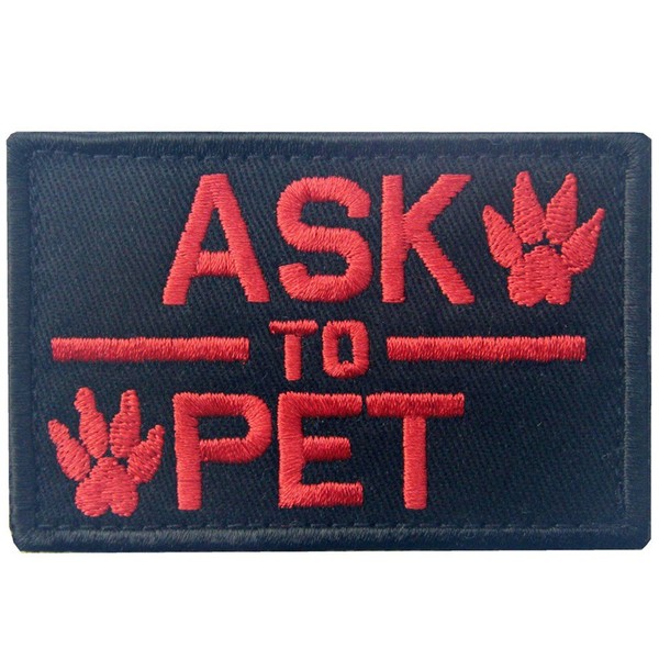 Service Dog Ask to Pet Tactical Embroidered Morale Hook & Loop Patch - Red