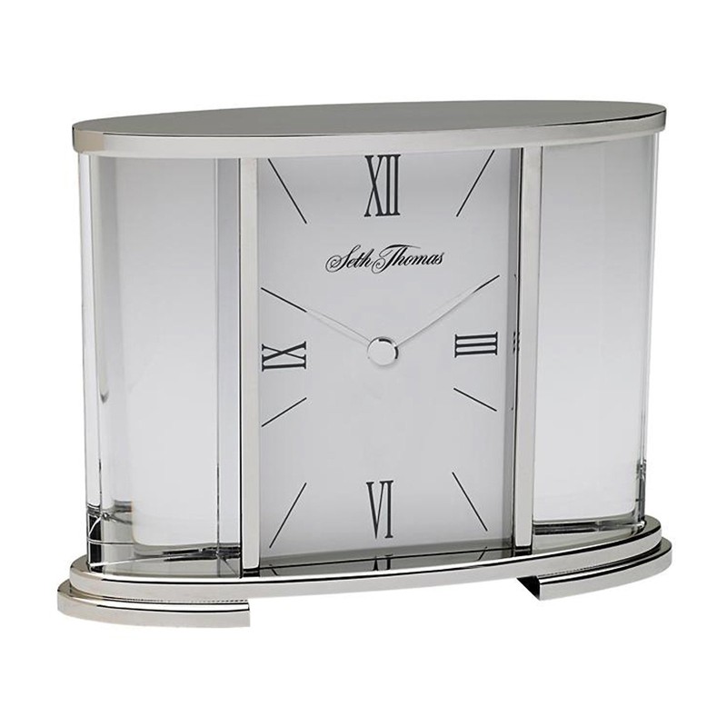 Seth Thomas TSI006060 Silver Glass Carriage Table Clock