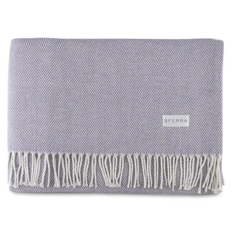 SFERRA Celine Herringbone, 100% Cotton Throw Blanket - Lilac