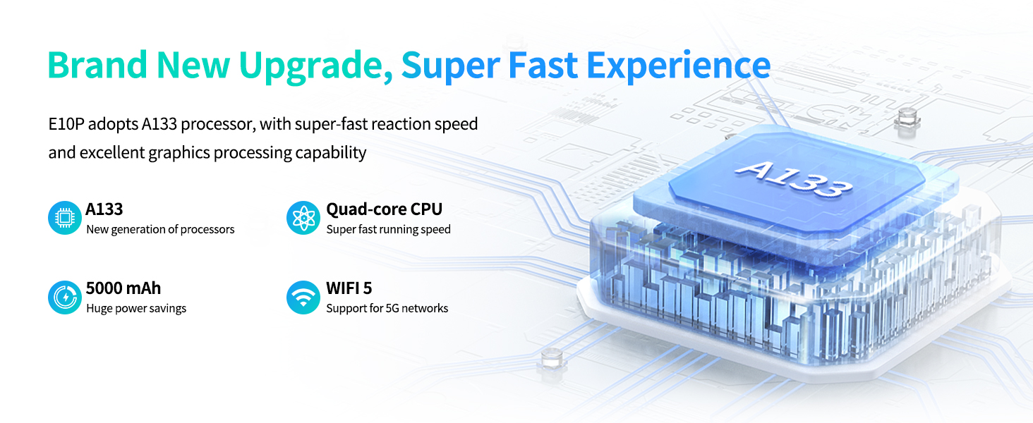 Equipped with a high-capacity 5000mAh battery, this Android tablet supports up to 8 hours of use, 48 hours standby, 20 hours of music, or 7 hours of online video on a single charge. Great for road trips, travel, or all-day learning. Power-saving mode helps extend battery life even further.