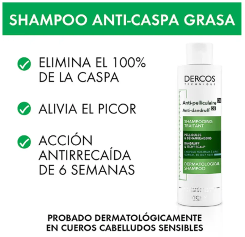 Dercos, shampoo para cabello normal a seco de Vichy, trata la caspa desde la raíz combatiendo los factores que la originan. Con su fórmula, Dercos refresca la piel cabelluda, combatiendo molestias como la comezón, el enrojecimiento y la descamación.