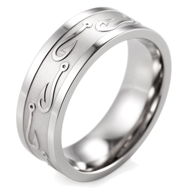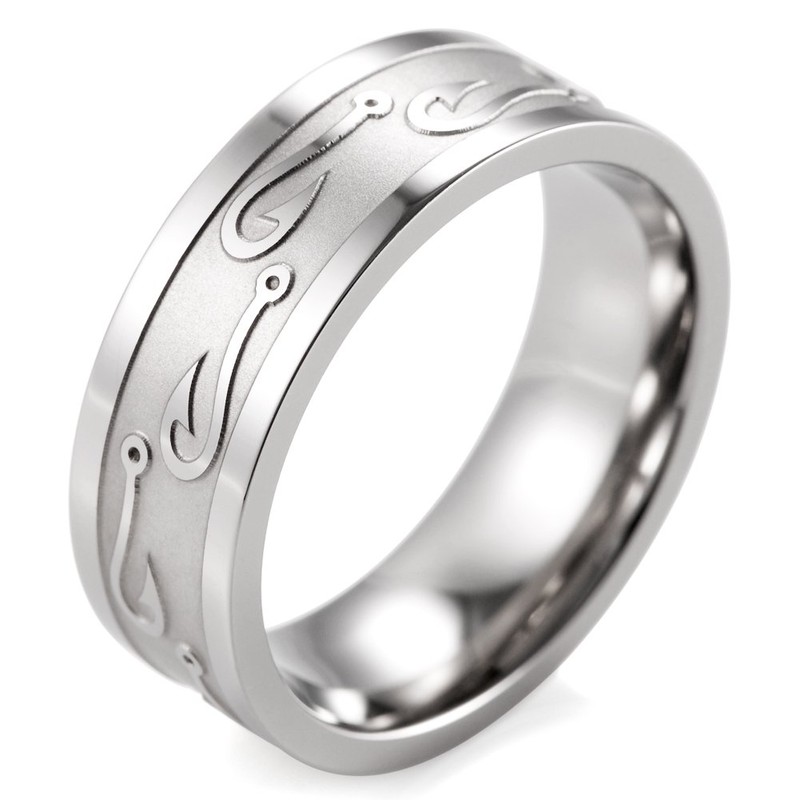 SHARDON Men's 8mm Titanium Ring with Embossed Fishhooks Size 11