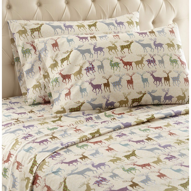 Shavel Home Products Micro Flannel Printed Sheet Set, Twin, Colorful Deer