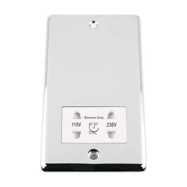 Shaver Socket - Dual Voltage 115V/ 230V - Polished Chrome - Classic - White Insert