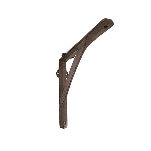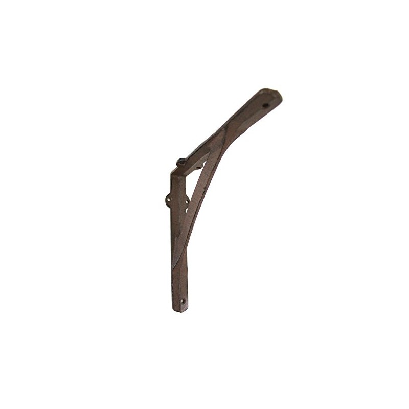 Rustic cast iron shelf support in antique brown. The deliberate irregularities of the surface give the item a rustic character. There are 3 holes for the wall and 3 for the shelf (mounting material is not included). This item has been hand cast according to centuries-old artisanal tradition.