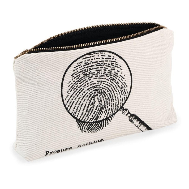 Organize your clues with this Book Pouch featuring text from Sir Arthur Conan Doyle's famous Sherlock Holmes tale, The Hound of the Baskervilles. Discover hidden literary meaning in a fingerprint on the reverse.