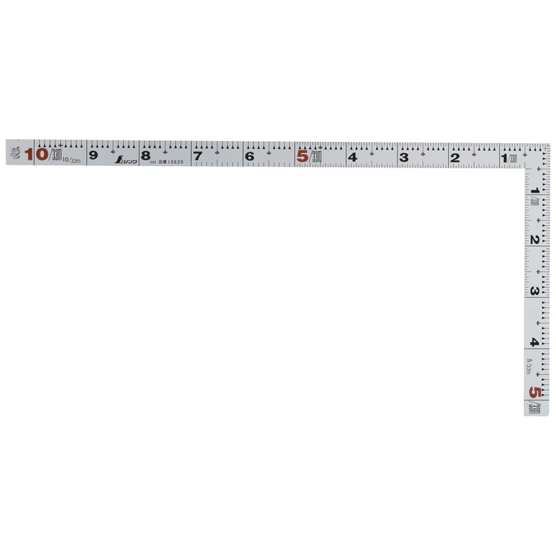 Shinwa Sokutei Measuring Square, Flat, Silver, Same Scale on Front and Back, 10620