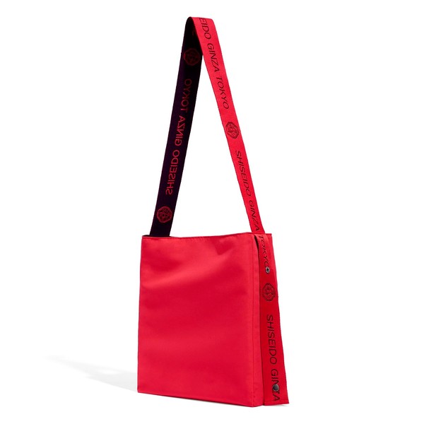 Eco-friendly bag made of recycled polyester material (peach skin), soft and smooth as the surface of the peach skin Features a playful design with ribbon adorned with iconic SHISEIDO. Reversible to fit your mood and mood of the day, folds up compactly for convenience and style Material: Polyester; Size: W 10.6 x H 12.6 x D 3.7 inches (27 x 32 x 9.5 cm) (excluding strap and tag parts).