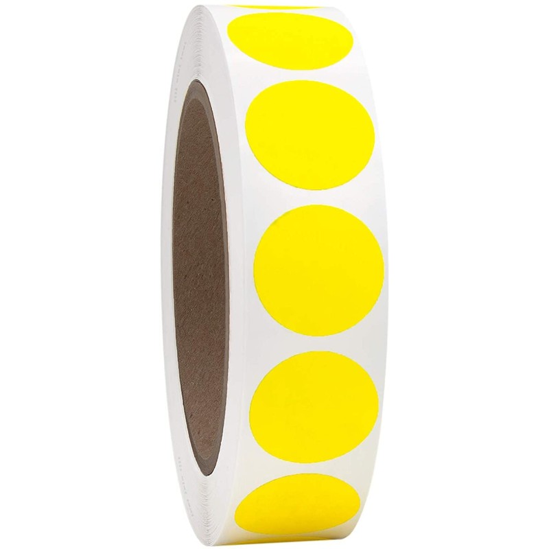 • 🟡 1000 color coding adhesive labels on 2 rolls, 500 per roll, 1” diameter, bright yellow, semi-gloss. Made in China