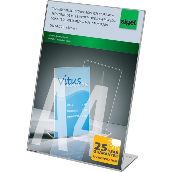 • The table stand from Sigel sets information perfectly in the scene and is an attractive eye-catcher on counters, tables, fairs and in exhibition rooms.