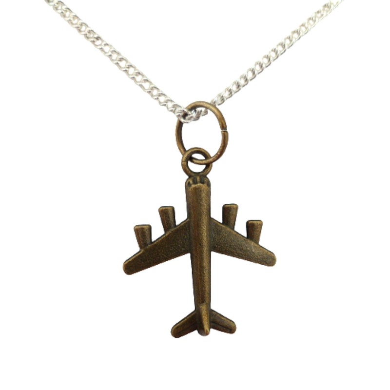 Silver Plated Necklace Four Engine Airplane Pendant