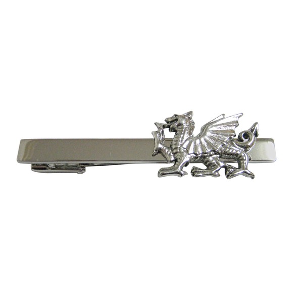 Silver Toned Textured Welsh Dragon Square Tie Clip