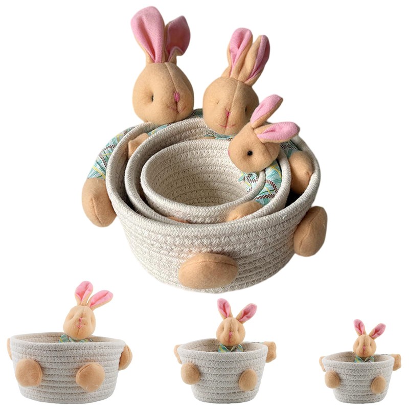 - 5. [Convenient Storage]:The stackable storage basket contains three braided rabbit baskets, large, medium and small. Stacking the three together can save a lot of space and facilitate storage when not in use