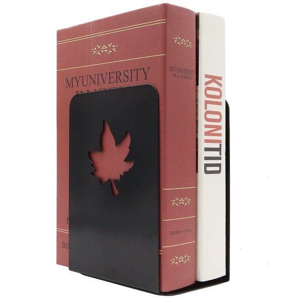Simple Black Hollow-Out Maple Leaf Pattern Nonskid Art Decorative Metal Solid Bookends Book Ends for Home Office Study Book Shelf